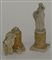 Arte del sec. XIX "Figure classiche" coppia di sculture in biscuit poggianti su base a plinto in marmo e alabastro (h. cm 24) (difetti e restauri)
