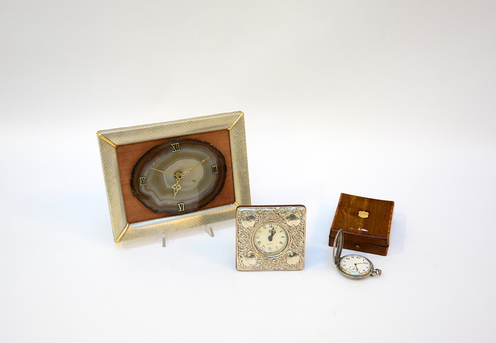 Lotto composto da un orologio da taschino in argento niellato a cui si uniscono due orologi con meccanismo al quarzo (difetti)