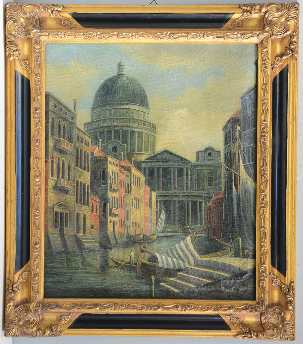 Firma indecifrata "Capriccio architettonico" olio su tela (cm 60x50) firmato in basso a destra, in cornice (difetti)