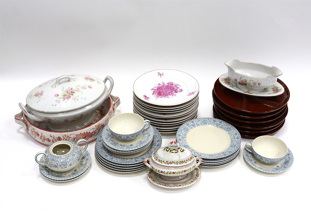 Lotto di due cartoni contenenti numerosi piatti e oggetti per la tavola di manifatture differenti, fra cui Ginori (difetti)