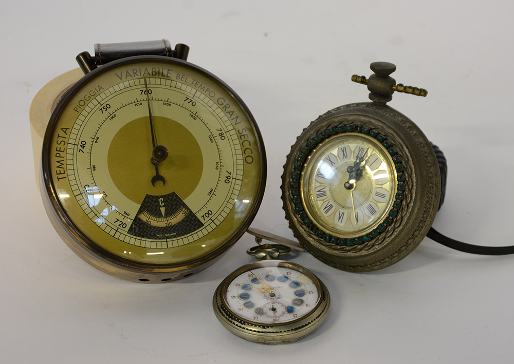 Lotto di due orologi con cassa in metallo cui si unisce un barometro