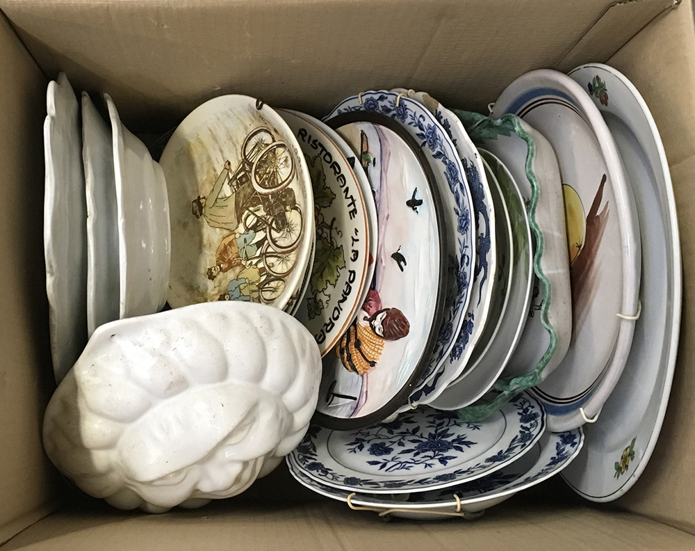 Cartone contenente numerosi piatti decorativi di fatture differenti (difetti)