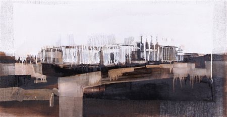 PAOLO PICOZZA Studio per Naracauli, 2004-2005 bitume e smalto su tela foderata cm. 44x85, firma, titolo, anno e timbro della Galleria Il Segno (Roma) al retro, dichiarazione d'autenticità dell'artista su certificato della Galleria Il Segno (Roma) allegato, opera senza cornice.
