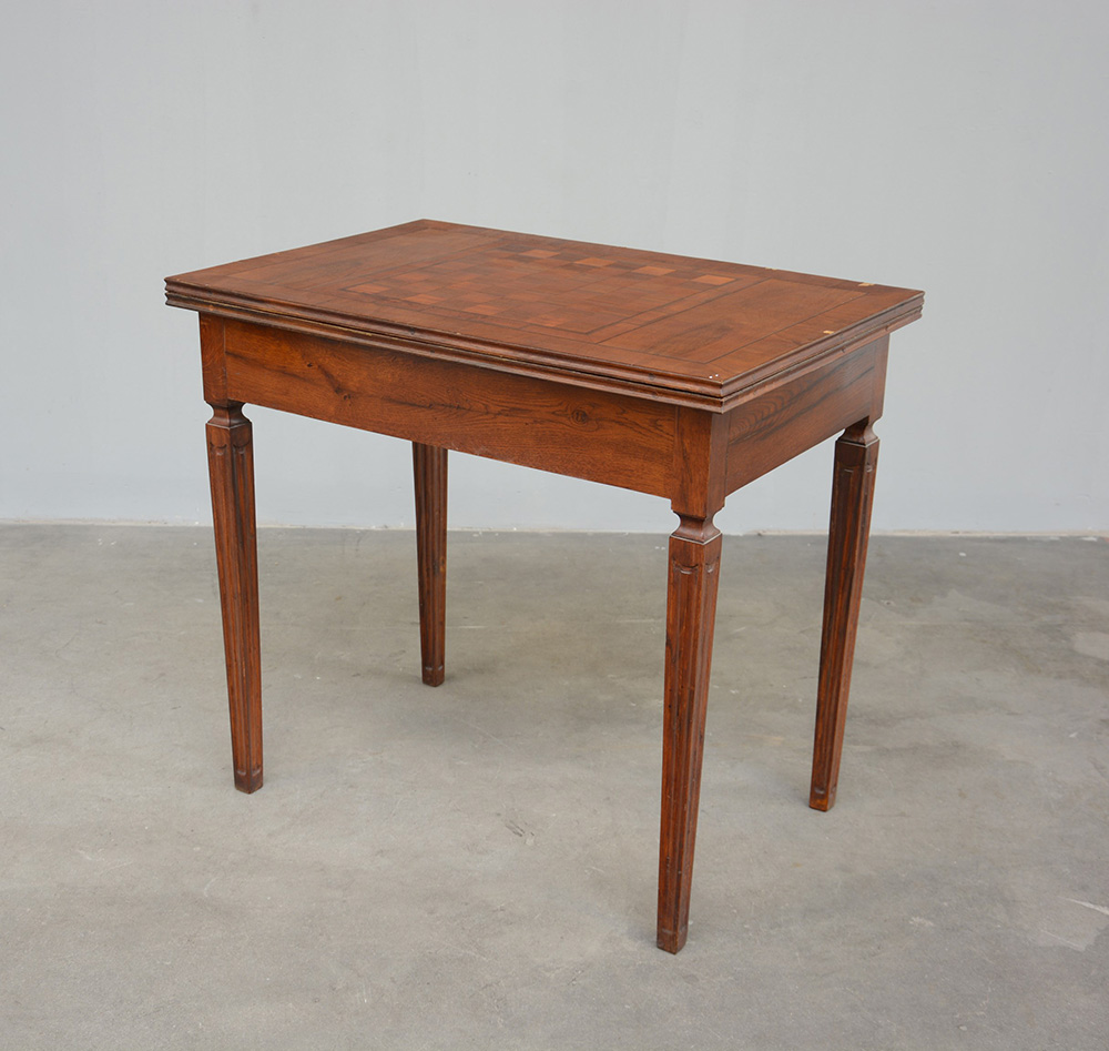 Tavolo a libro lastronato e filettato gambe rastremate e scanalate (cm 90x82x59)(difetti).