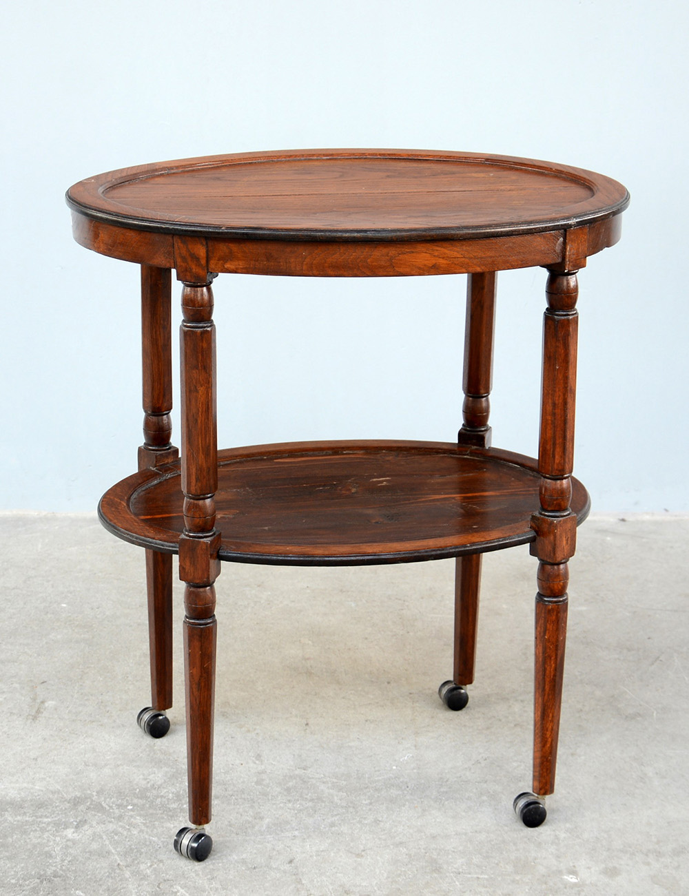Carrello ovale porta vivande in castagno a due ripiani; sec. XX (cm 69x80x49) (difetti)