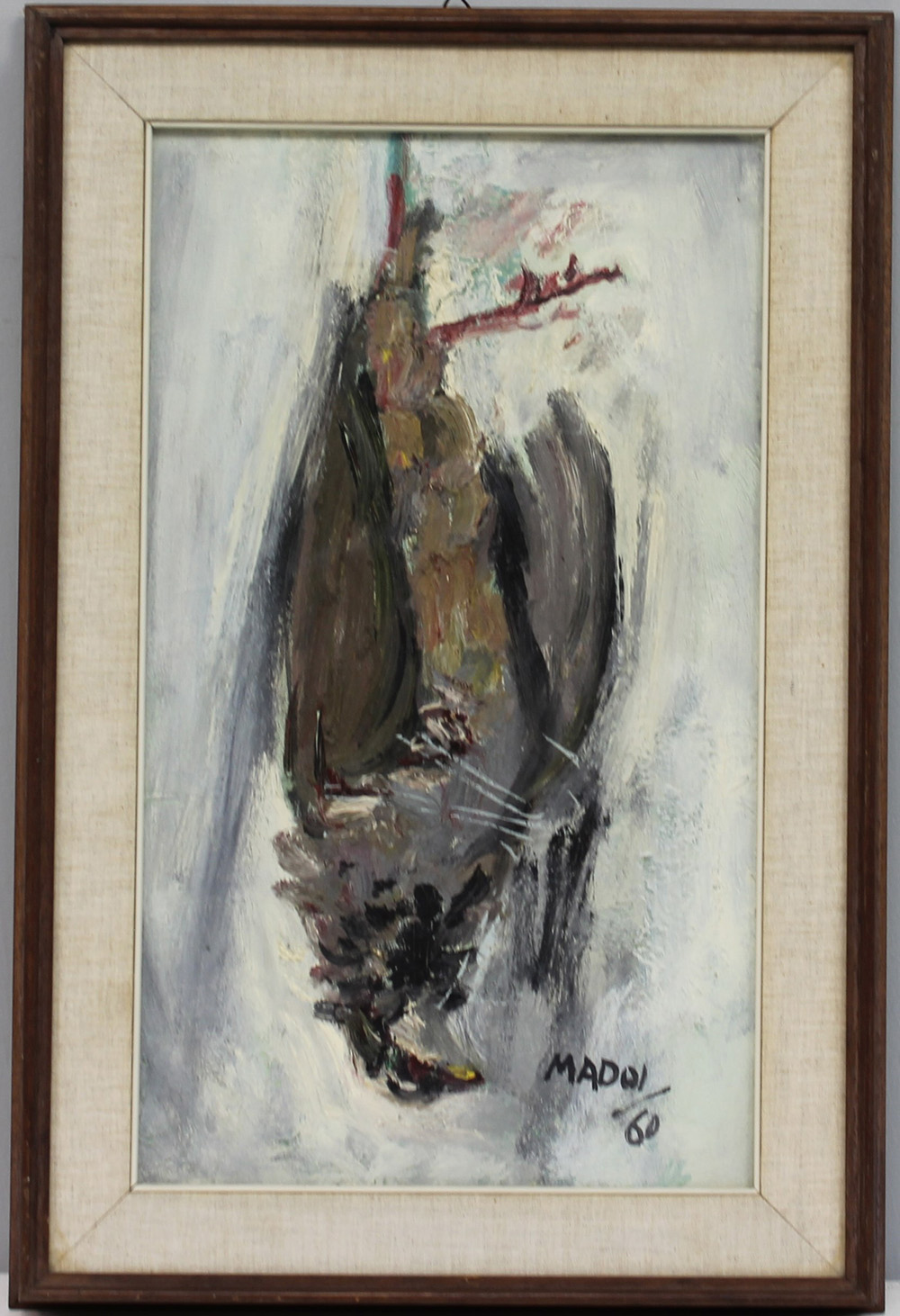 Madoi "Cacciagione" olio su tela (cm 50x30) firmato e datato 1960 in basso a...