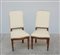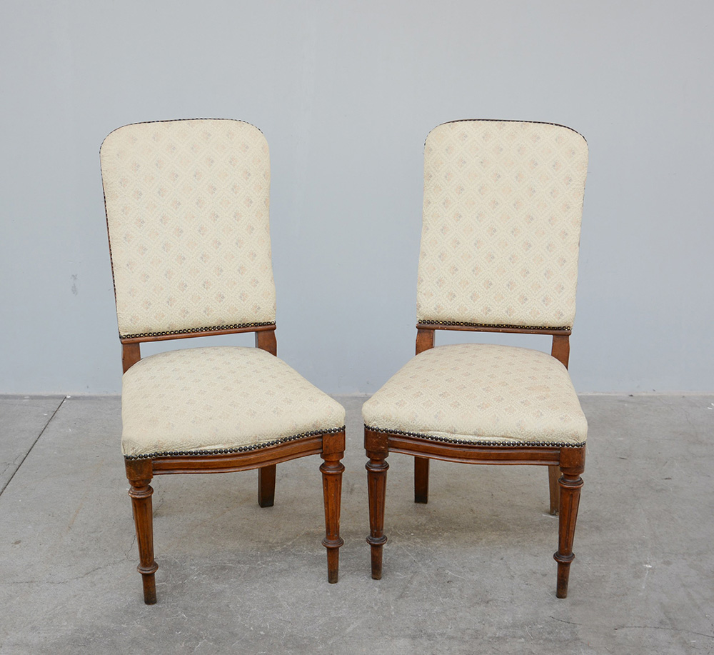 Coppia di sedie con gambe anteriori tornite e rastremate, sedute e dorsali imbottiti (lievi difetti)