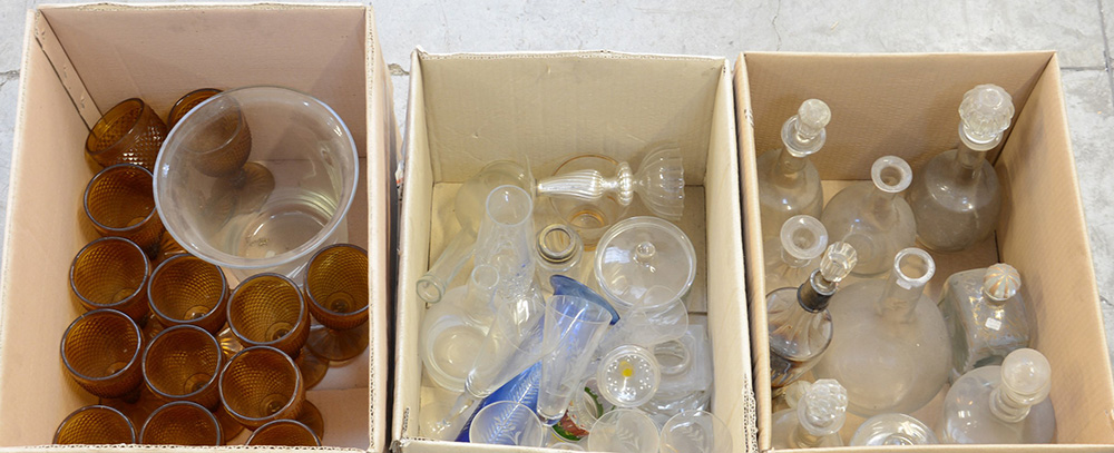 Lotto 3448 | Tre cartoni contenenti oggetti in vetro (difetti)