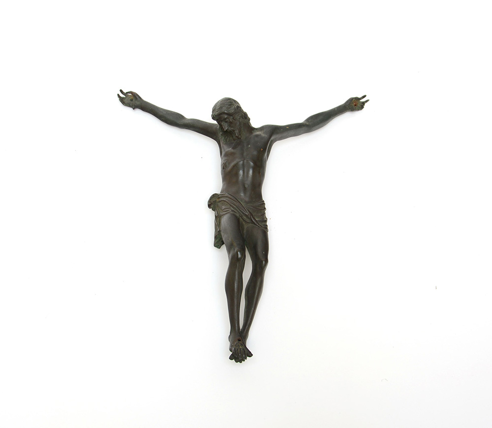 Antica scultura in bronzo raffigurante Cristo crocifisso (h cm 40) (difetti)