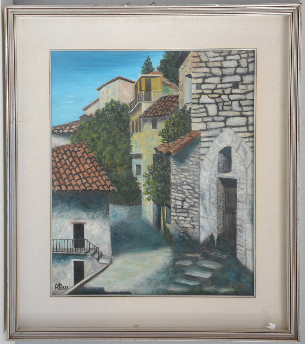 Pozzi "Scorcio di paese" olio su tela (cm 58x47) firmato in basso a sinistra,...