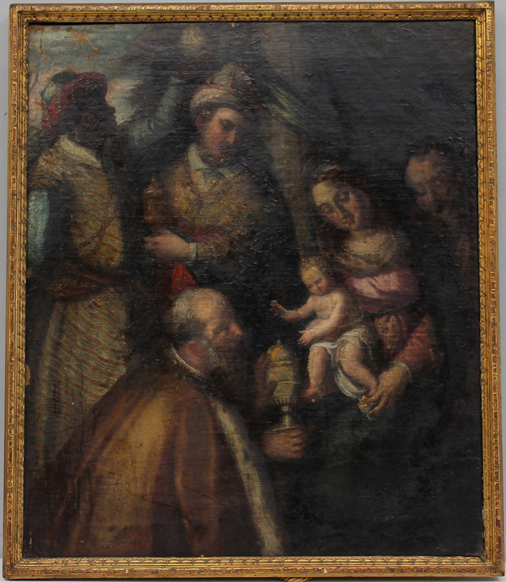Lotto 3544 | Antico dipinto raffigurante "L'adorazione dei Magi" olio su tela (cm 82x69)...