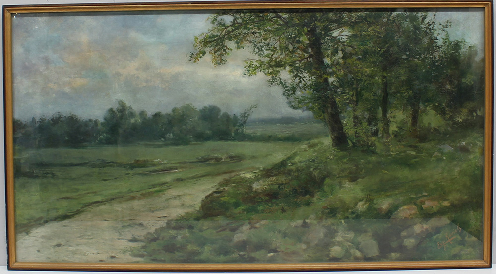 "Campagna con alberi" olio su tela, firmato in basso a destra (cm 64x120) in cornice