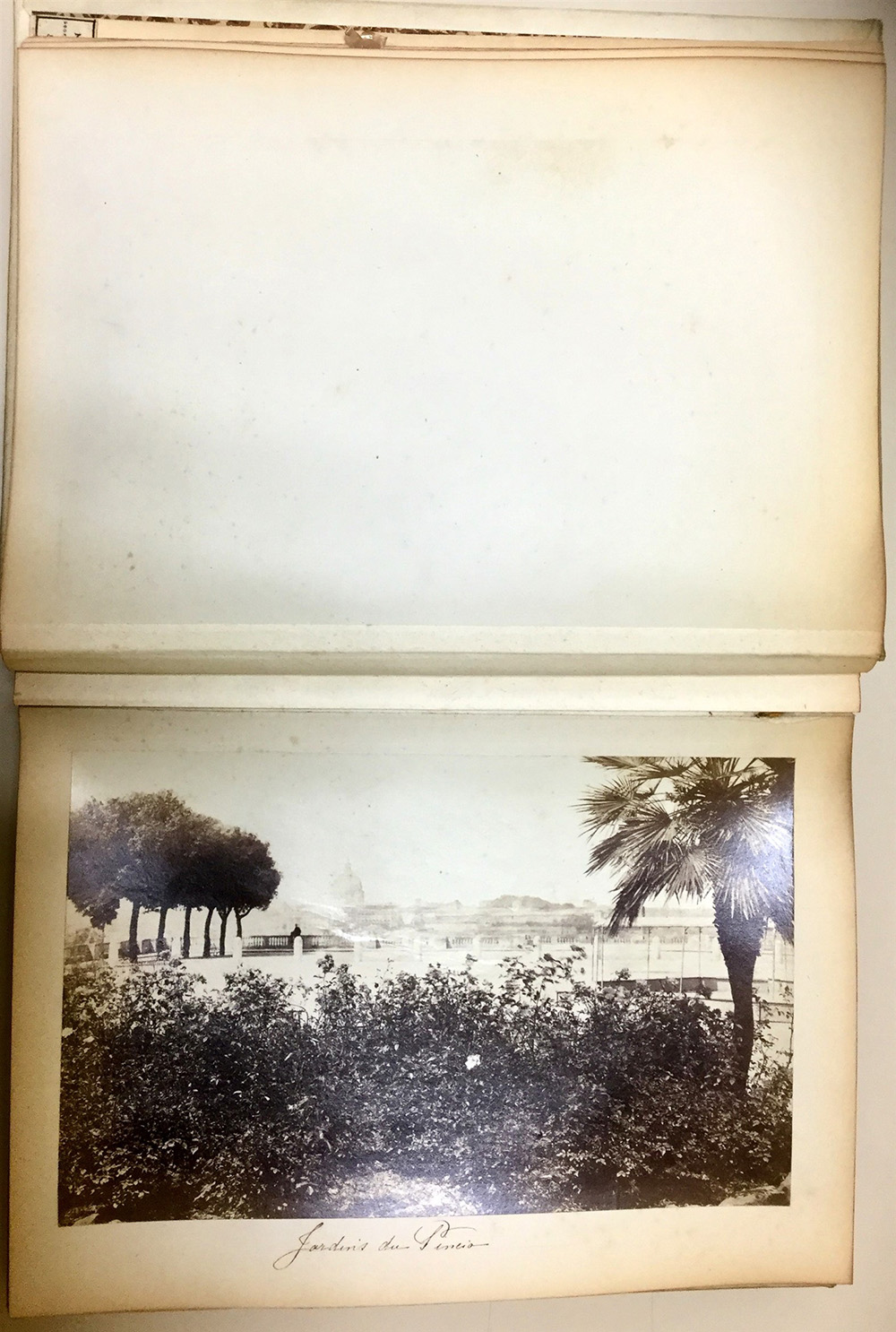 Volume contenente numerose fotografie di monumenti romani, legatura in pergamena con fregi dorati (lievi difetti)