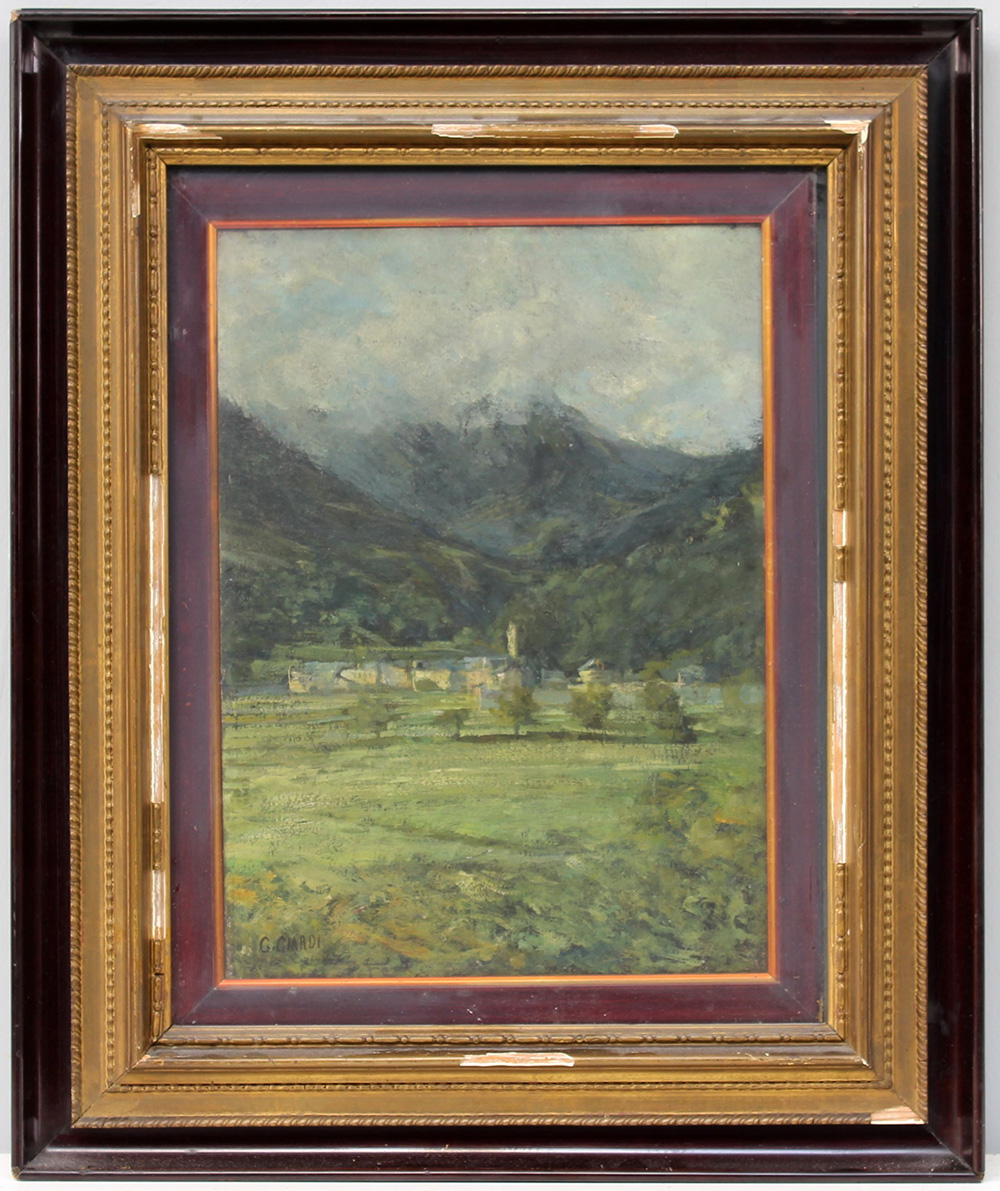 G. Ciardi "Scorcio di Santa Maria Maggiore" olio su cartone (cm 39,5x29)...