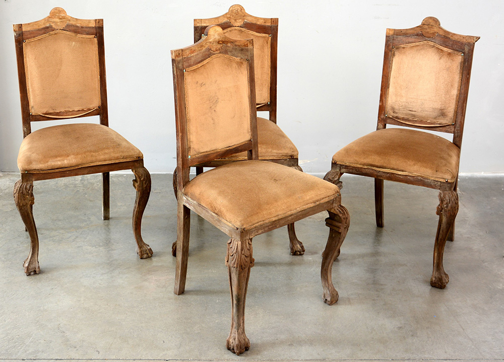 Gruppo di quattro sedie in noce con gambe anteriori tornite intagliate da artigli (difetti)