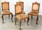 Gruppo di quattro sedie in noce con gambe anteriori tornite intagliate da...