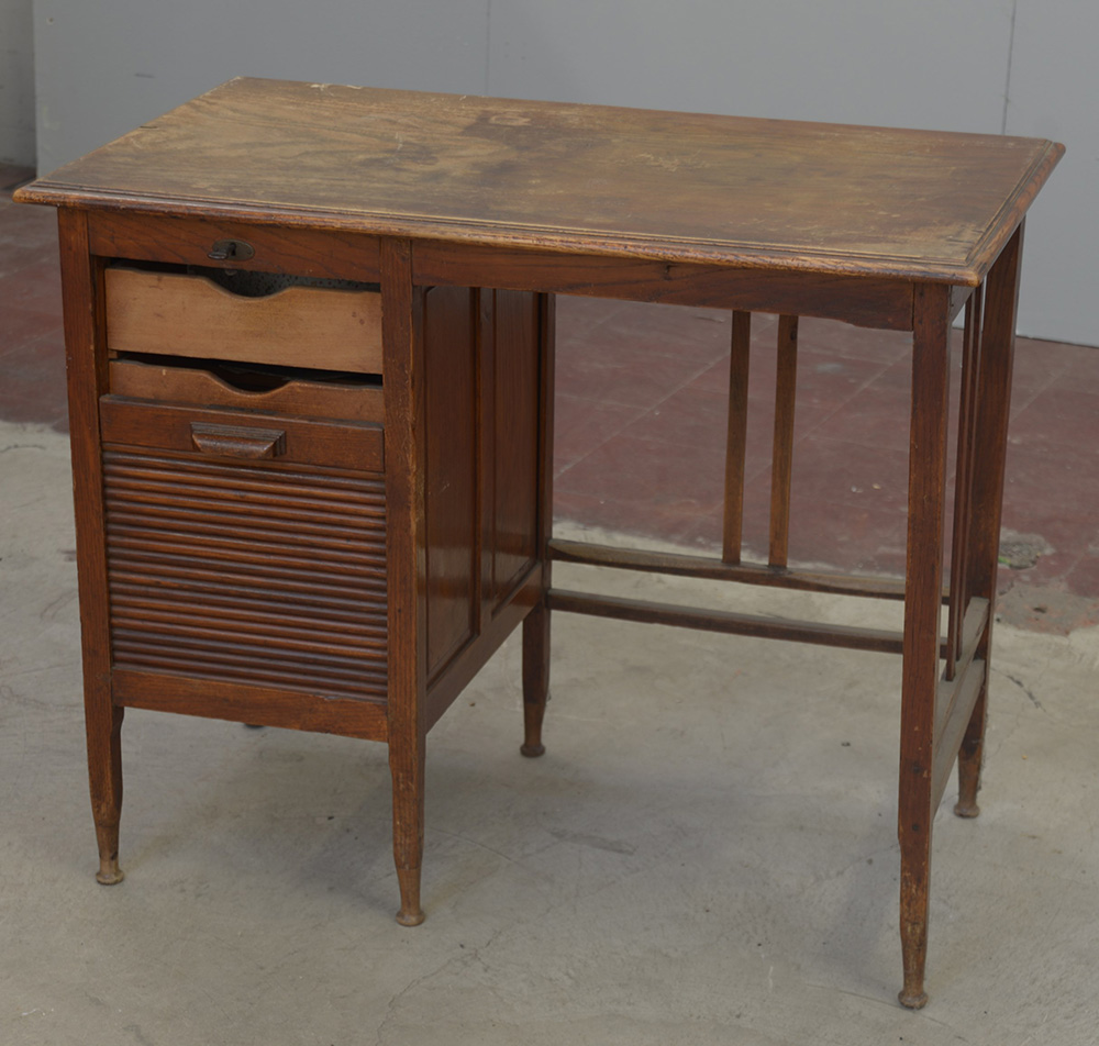 Piccolo scrittoio con anta laterale a saracinesca celante cassetti. Inizio sec. XX (cm 90x74x50)(difetti)