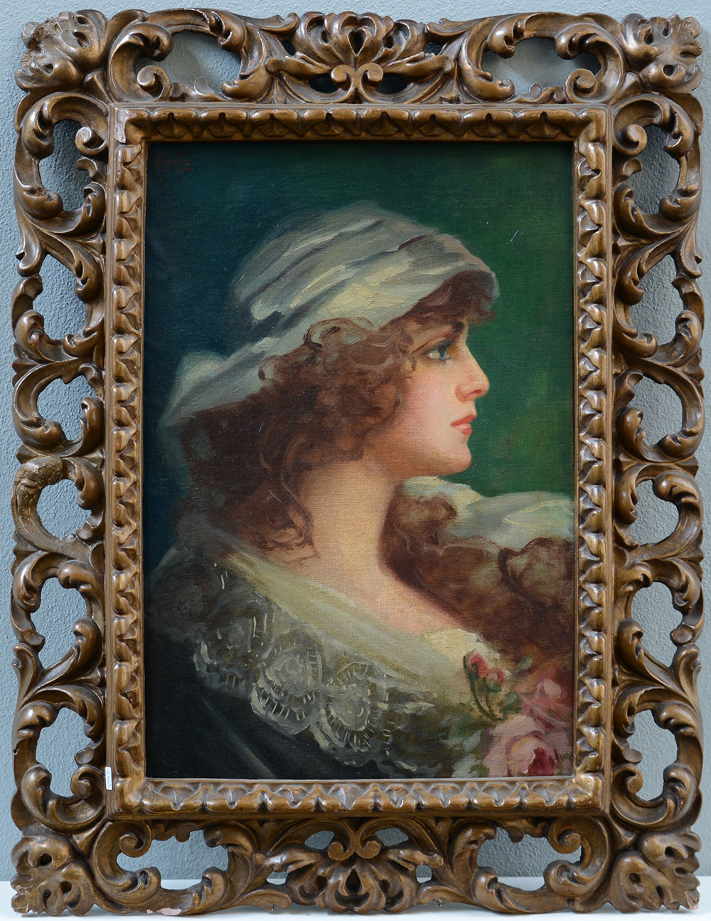 Scuola dell'inizio del sec. XX "Ritratto di ragazza" olio su cartone telato (cm 48x34) in cornice