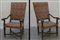 Coppia di poltrone in noce con braccioli mossi terminanti a ricciolo, gambe...