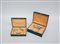Formaggera in argento con decoro a volute e palmette, completa di cucchiaino e vaschetta in vetro, in custodia (l. cm 17,5) (gr 310 ca.) unito ad un set di tre saliere in argento con vaschetta in vetro complete di cucchiaini, in custodia (gr 155 ca.)