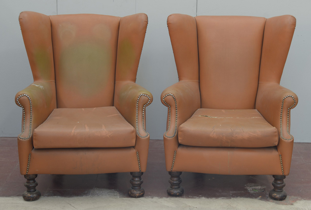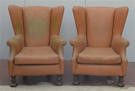 Coppia di poltroncine rivestite in finta pelle (gravi difetti)