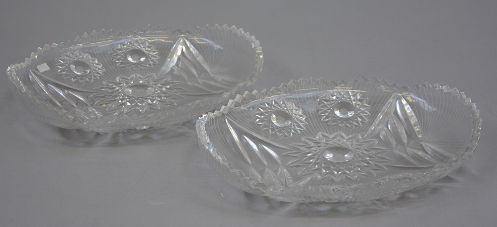 Lotto composto da due centrotavola ovali in cristallo molato con bordo frastagliato