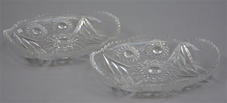 Lotto composto da due centrotavola ovali in cristallo molato con bordo...