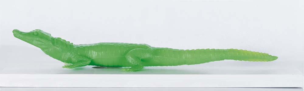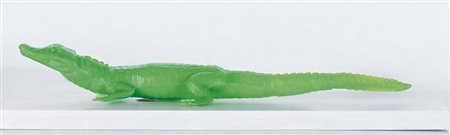 CRACKING ART - Coccodrillo verde, scultura in plastica con base in legno cm. 65x9x18, esemplare 5/200, timbro del Cracking Art Group sotto la base.