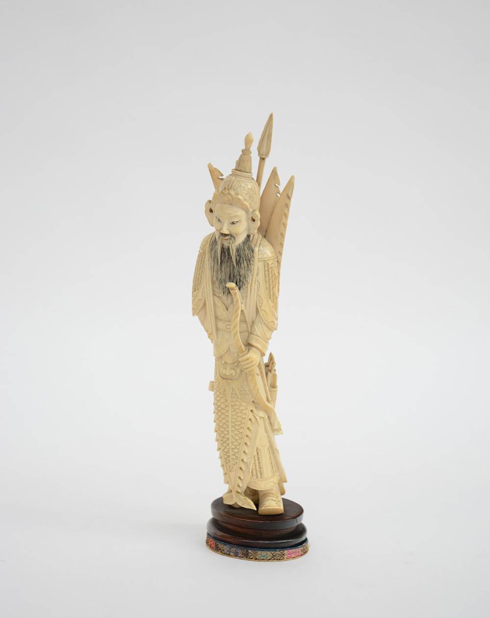 Scultura in avorio raffigurante arcere dalla lunga barba, base in legno (mancanze)