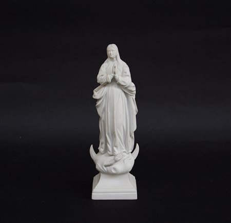 Manifattura portoghese Vista Alegre, scultura in biscuit raffigurante “L’Immacolata” (h cm 29)