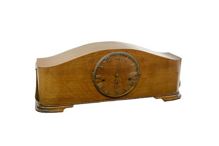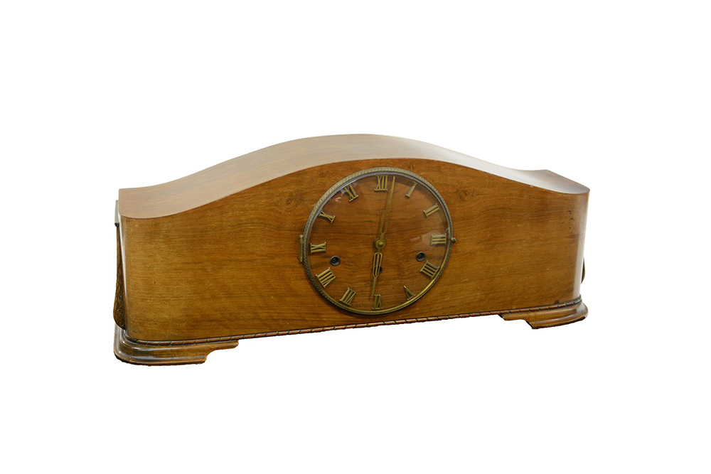 Pendola da tavolo con cassa in legno dolce, quadrante con numeri romani applicati, carica settimanale delle ore e dei quarti con suoneria Westminster; anni ‘30/‘40 del sec. XX