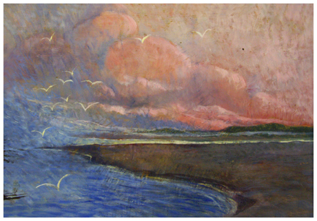 SPARTACO CARLINI Pisa 1884 – Pisa 1949 Foce d’Arno Olio su tavola 22,5 x 33. Firma e titolo sul verso. B.A.: 290