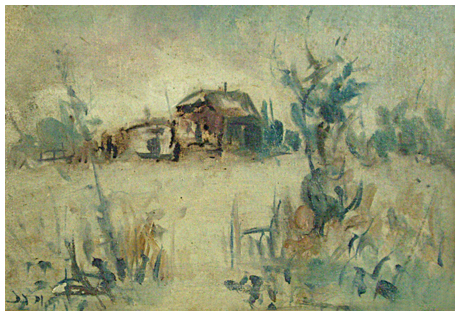 ALVARO DANTI Livorno 1911 – Livorno 1985 Senza titolo Olio su cartone intelato 20 x 30. Firma in b. a s. B.A.: 100
