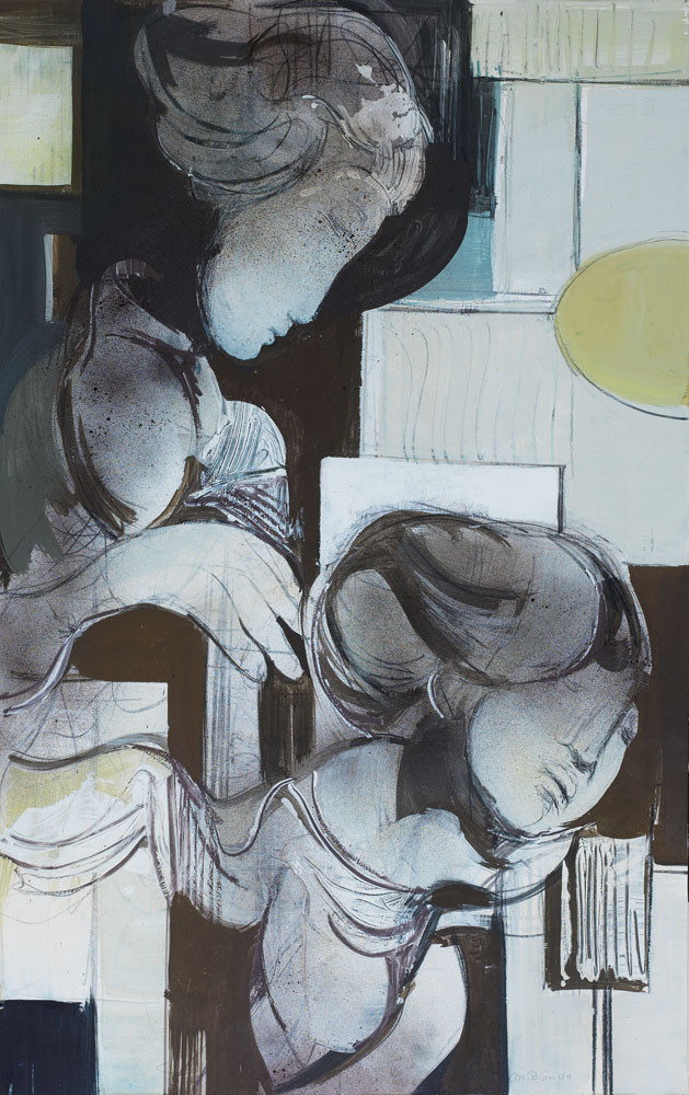 MARIO BIONDA Torino 1913 - Penango (AT) 1985 - Figure, polimaterico su cartoncino applicato su tavola cm. 80x50, firma in basso a destra.