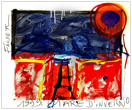 MASSIMO FALSETTI Roma 1955 Tor Vajanica 2000 Olio e vernice a spray su tela 50 x 60. Firma in a. a s. (in verticale), data e titolo in b.; sul verso titolo, data e firma. Questo dipinto sarà pubblicato sul catalogo della mostra personale dell’artista che avrà luogo dal 14 luglio al 10 agosto 2018 presso la Saletta d’Arte Viviani, Pisa. B.A.: 500