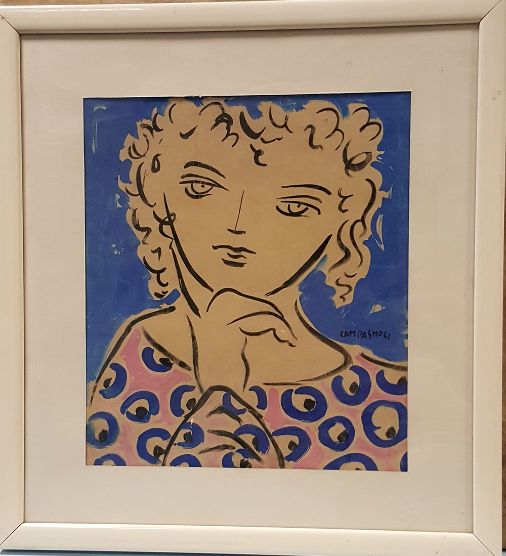 Romano Campagnoli, "Omaggio a Matisse", tempera su cartoncino cm 31x28, firma a dx
