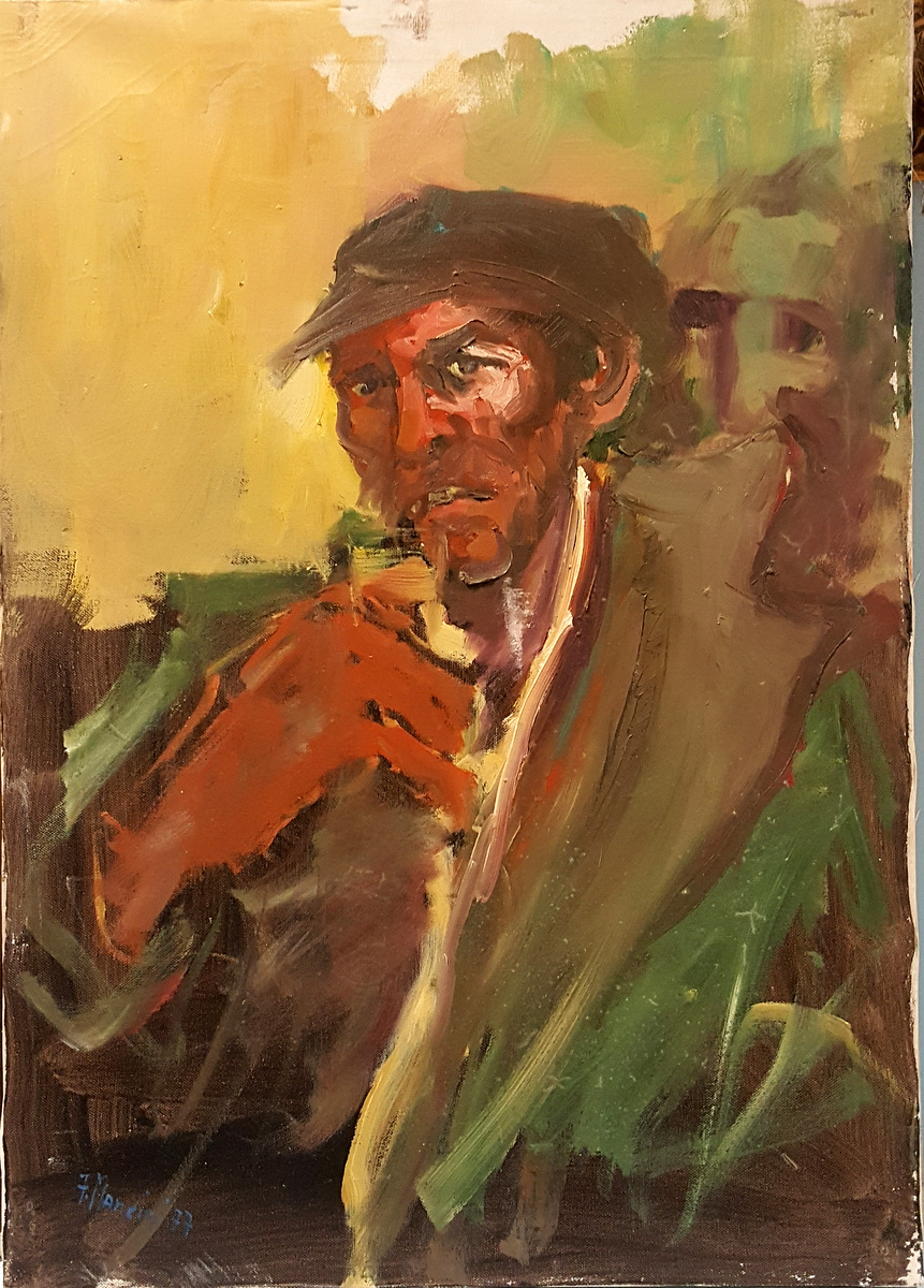 Lotto 23 | Antonio Mancini, "Contadino", 1977, olio su tela cm 70x50, firma e anno in...