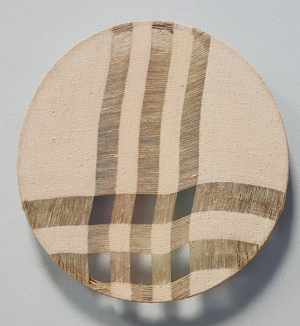 Giustino Caposciutti, "Composizione", tecnica mista su tela diametro cm 27, autentica e firma dell'Artista al retro