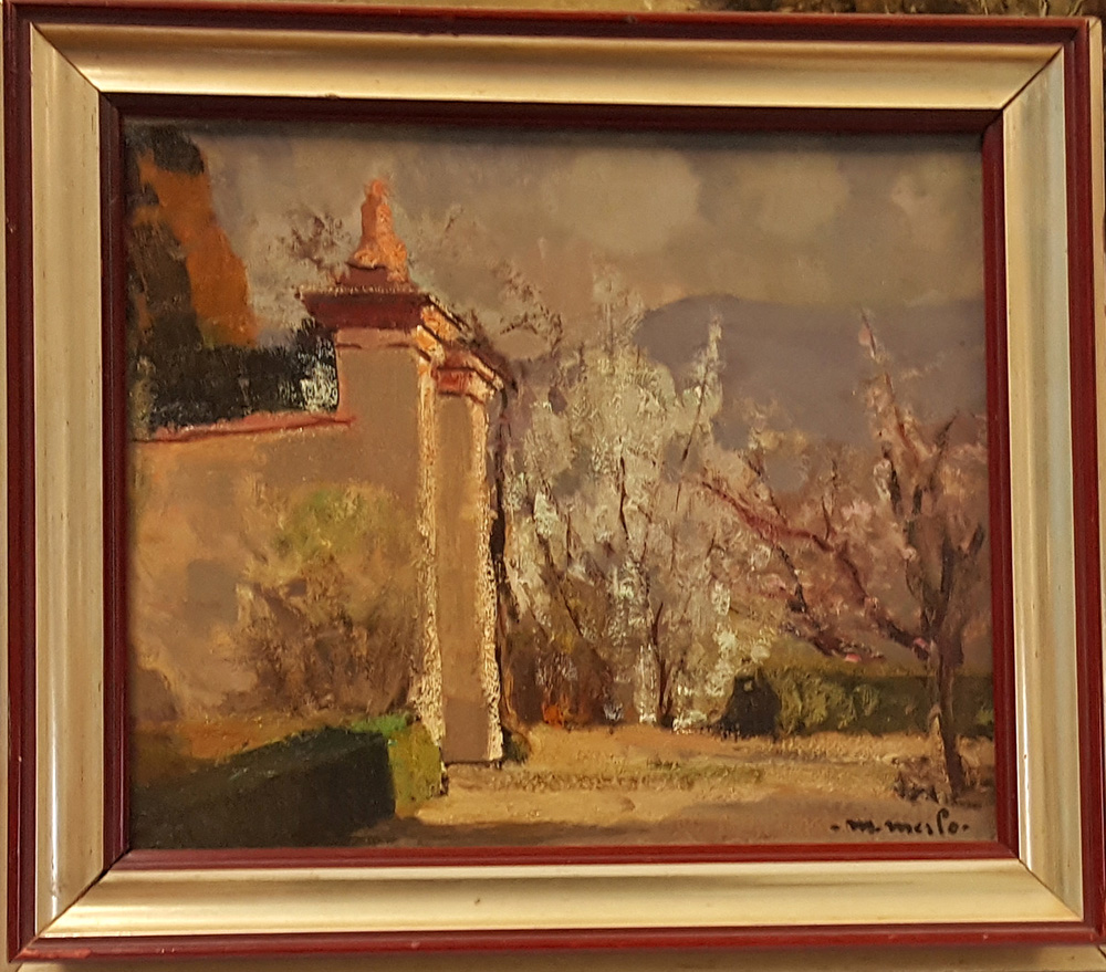 Metello Merlo, "Villa della Regina", olio su cartone cm 25x30, firma in basso a dx