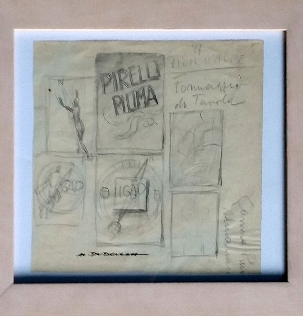Marcello Dudovich, 1944, "Pirelli Piuma", matita su carta cm 20x20,5 firma in basso a sx, autentica su foto dell'Esperto Gianpaolo Resentera