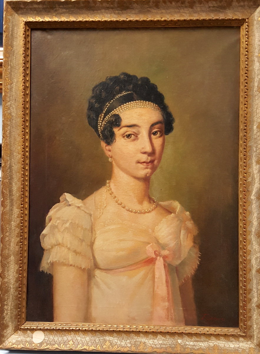 Flanco, "Ritratto di giovane nobile", Scuola Francese, inizi '900, olio su tela cm 70x50, firma in basso a dx