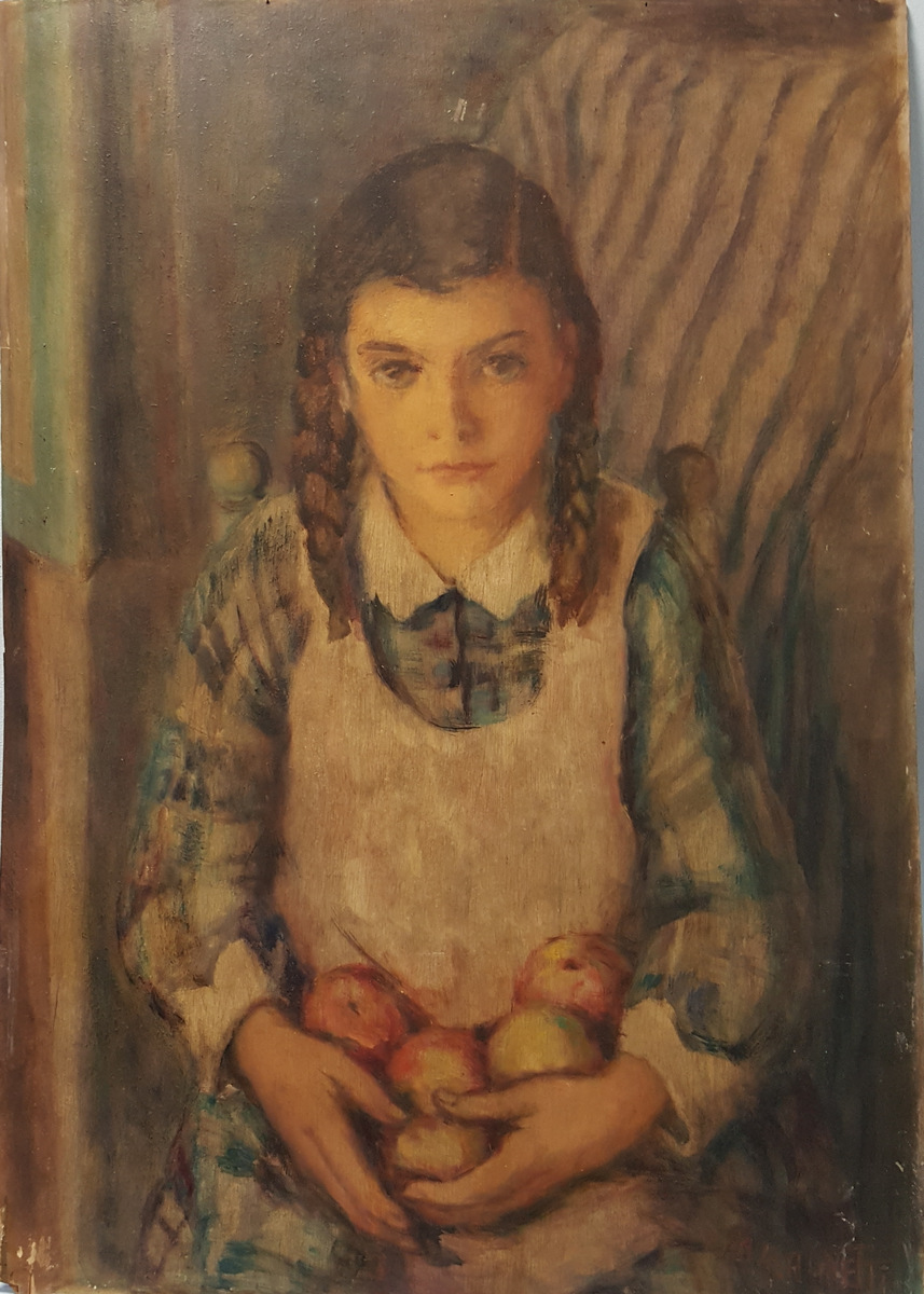 Maria Magnetti, "Anna", olio su tavola cm 86,5x61, firma in basso a dx, titolo e valutazione al retro, etichetta Ente Provinciale Turismo - Torino
