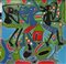 George Lilanga, "Figure africane", olio su masonite cm 61x61, firma in basso a sx, autentica su foto Cpt. Felix Lorenz