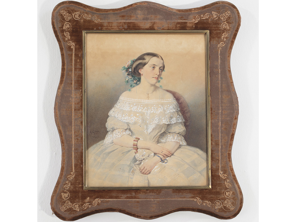 Francesco Gonin (1808–1889), Acquarello su carta, Ritratto di giovane dama...