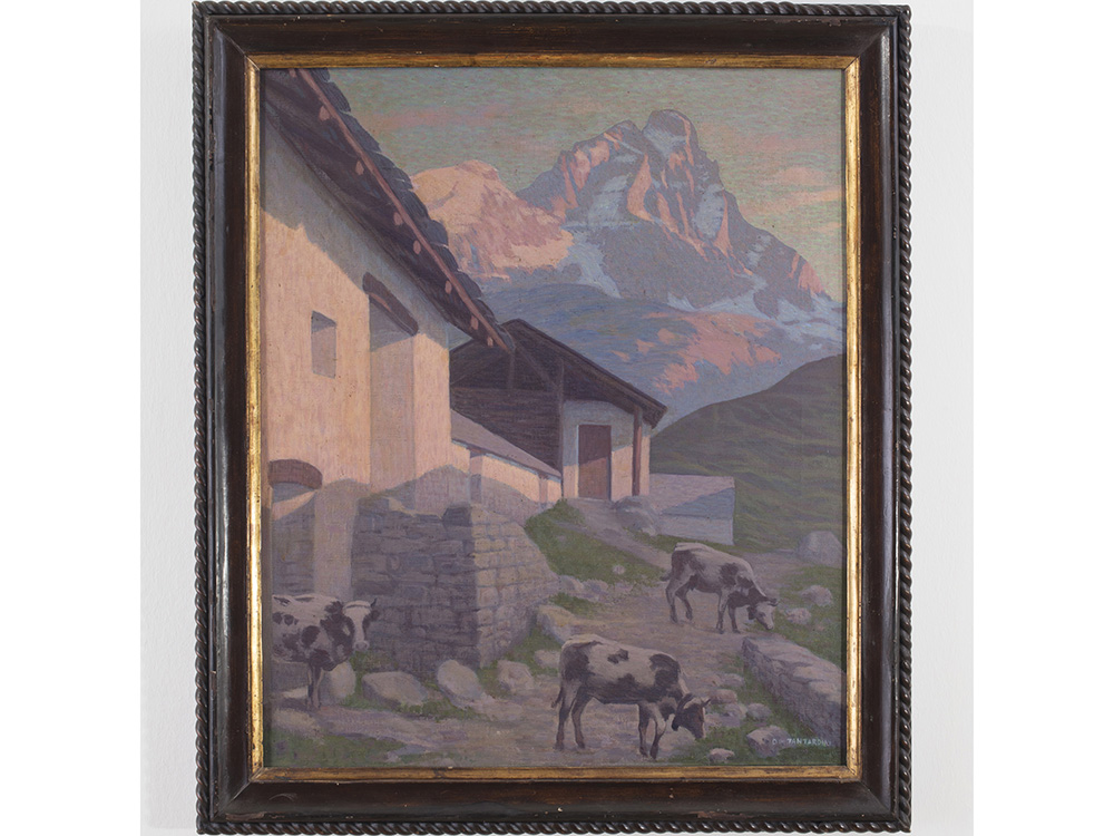 Mario Tantardini (1887-?), Olio su tela, Paesaggio montano con armenti 65x55 cm