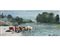Rutilio Muti (1904-1995), Olio su compensto, Paesaggio fluviale con figure e...