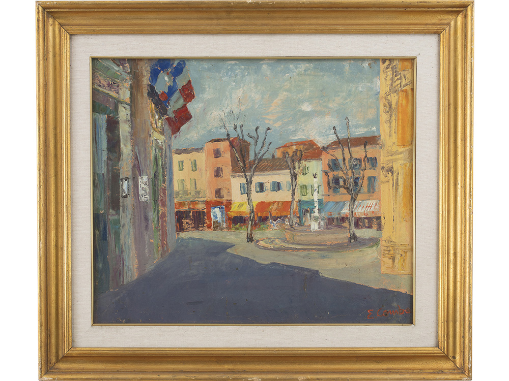 Emilio Comba (1924), Olio su tela, Piazza 50x60 cm