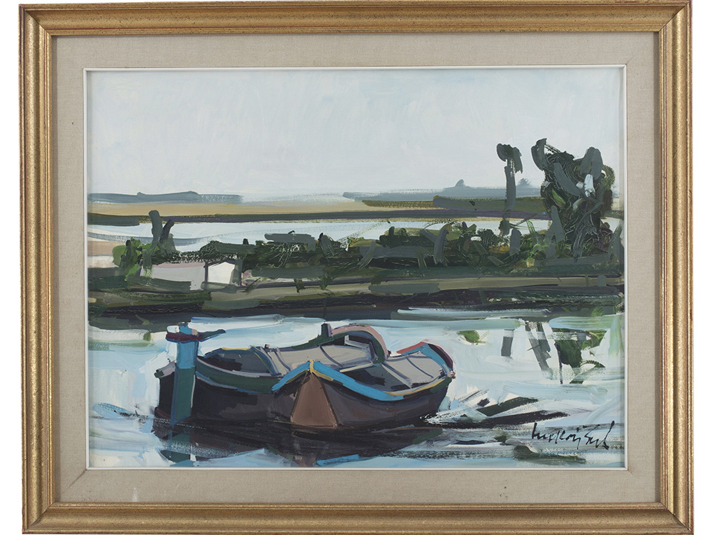 Carlo Marconi (1934), Olio su tela, Paesaggio con barche 60x80 cm