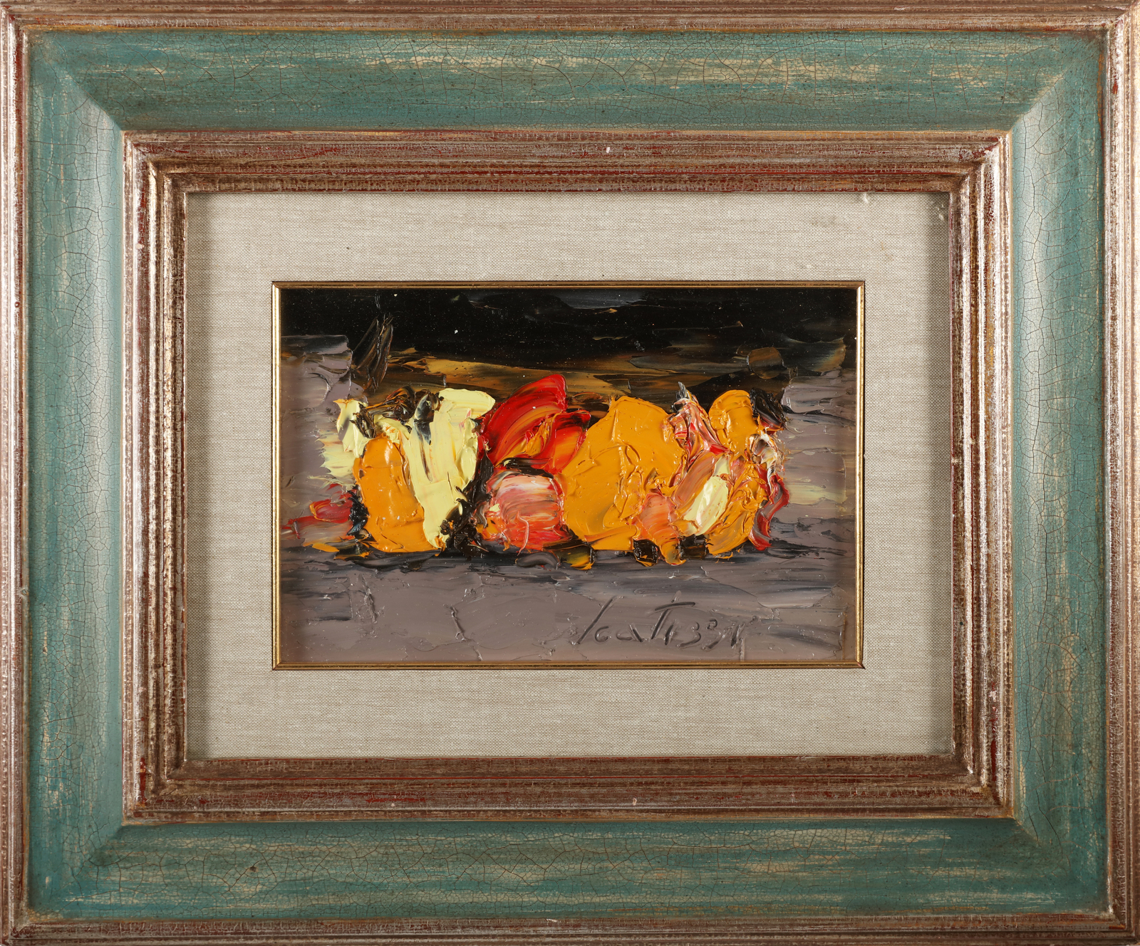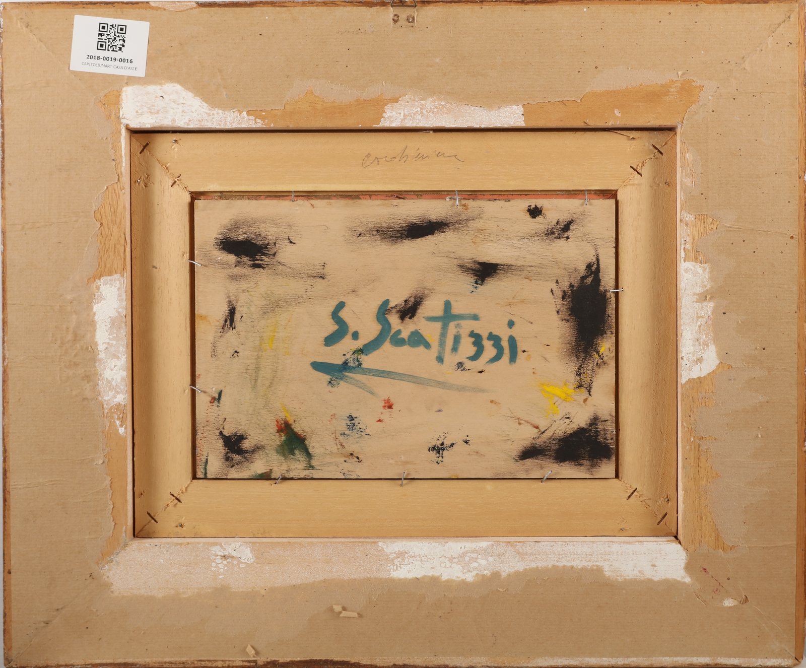 SCATIZZI SERGIO (1918 - 2009) Untitled. Oil on board. Cm 30,00 x 20,00. Signature lower right and at the back. Artist's authenticty certificate on photo. Cornice presente