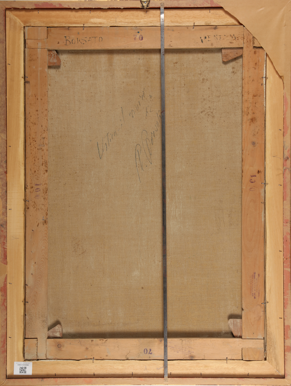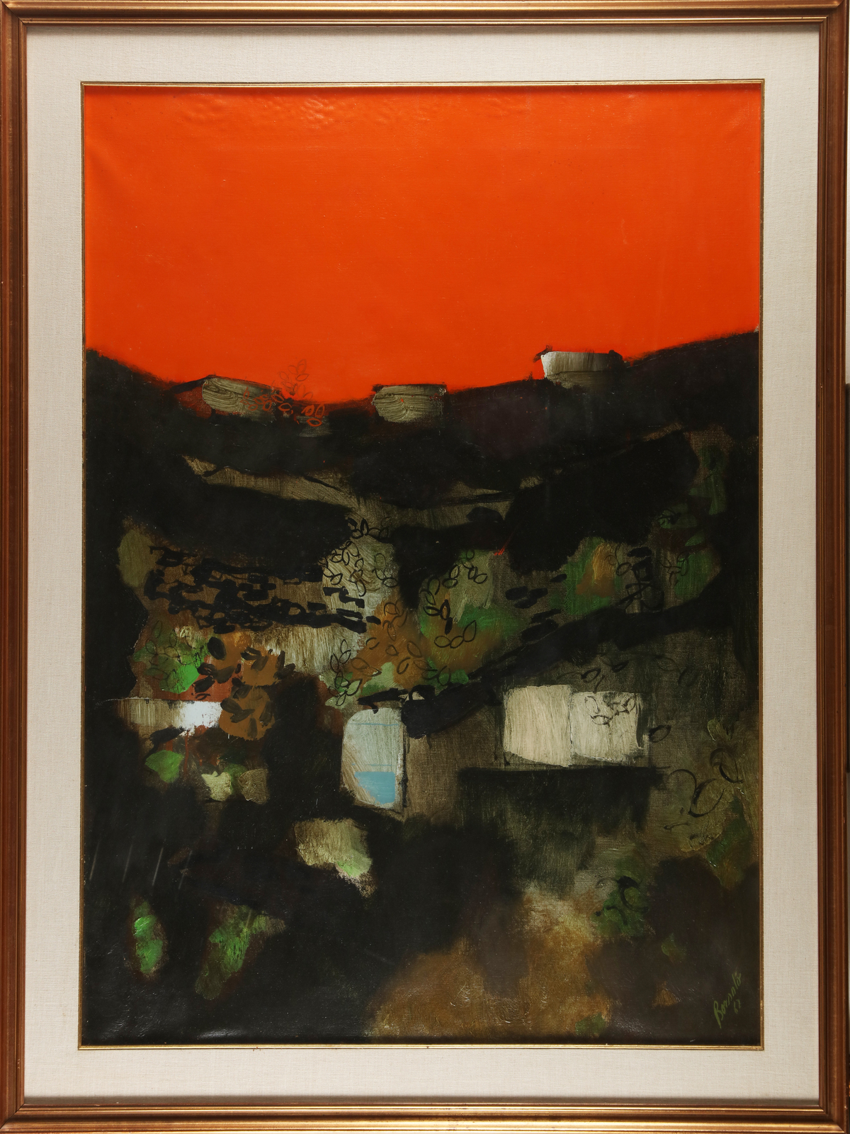 BORSATO RENATO (n. 1927) Senza titolo. 1962. Olio su tela . Cm 70,00 x 100,00. Firma e anno in basso a destra e al retro. . Cornice presente